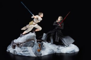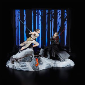 El primero es un centerpiece de Rey y Kylo Ren en su batalla durante Starkiller Base. La figura contiene un led que se ilumina como fondo y efectos de vapor saliendo del piso. Su costo será de $109.99 USD.