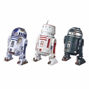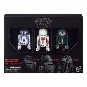 Recientemente fue actualizada la página de Amazon USA con un paquete de tres droides astromecánicos de la linea Black Series exclusivos de dicha tienda. Este paquete triple contiene a R2-D2 con un acabo de pintura distinto a sus previos lanzamientos, dandole un aspecto de suciedad. También incluye a R5-D8 (no confundir con R5-D4) y R2-X2. Ambos droides pueden ser vistos brevemente en Episodio IV durante la batalla de Yavin.