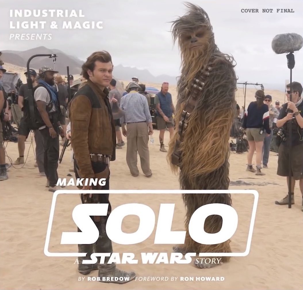 La semana pasada se anunció que el próximo abril (2019) se publicará un libro que documenta la producción del filme. El contenido del libro abarcará cronológicamente pre-producción, producción y post-producción. Incluirá también información sobre la creación de nuevos mundos, secuencias y el rediseño del Halcón Milenario. Me pregunto si también incluirá información sobre el cambio de director, aunque honestamente lo dudo bastante.